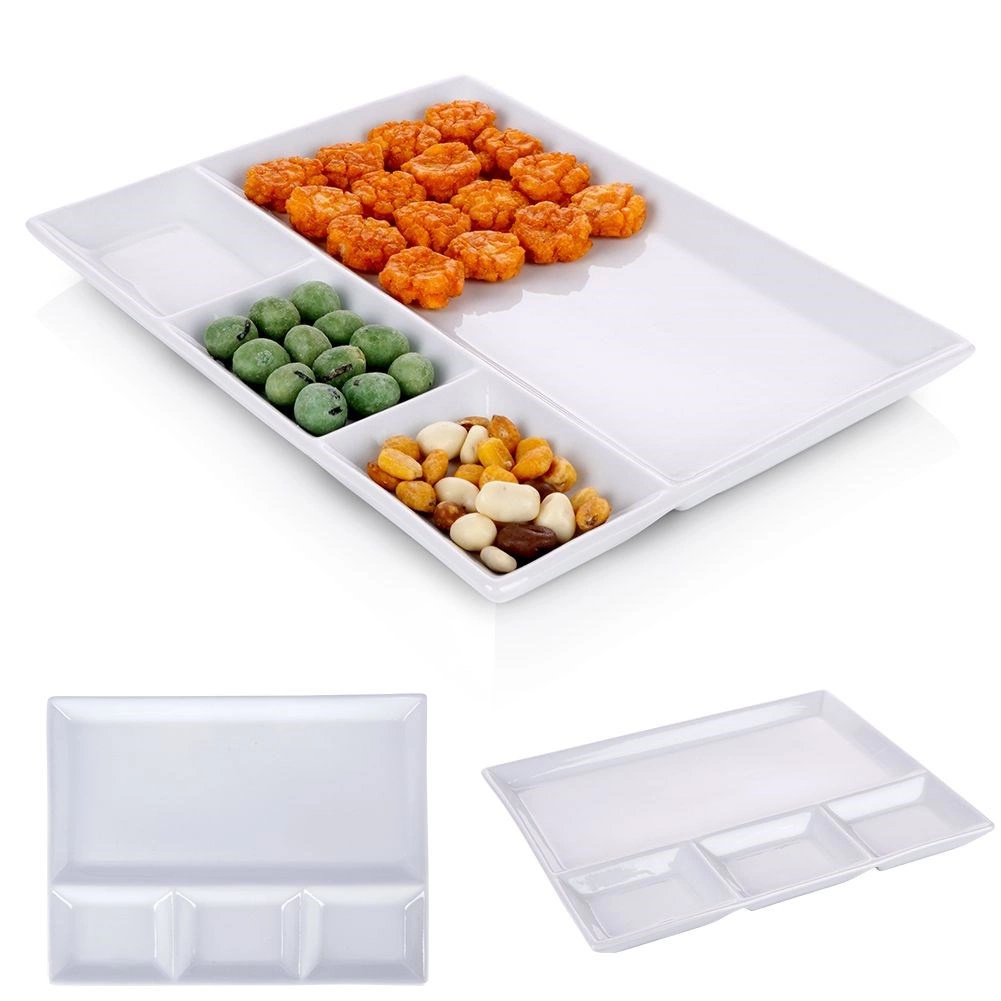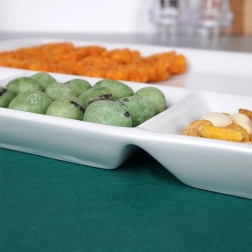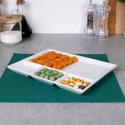 Eén grotere en drie kleinere vakken houden smaken gescheiden en zorgen voor een nette presentatie van voorgerechten, sauzen of bijgerechten.