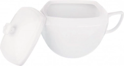 Deze porseleinen soepterrine met deksel combineert klassiek design en praktisch gebruik. De royale inhoud van 3,5 l maakt het eenvoudig om soepen, goulash, curry of andere eenpansgerechten voor meerdere eters te serveren. De witte glazuur past perfect bij elk tafelservies en komt prachtig tot zijn recht op een feestelijk gedekte tafel.