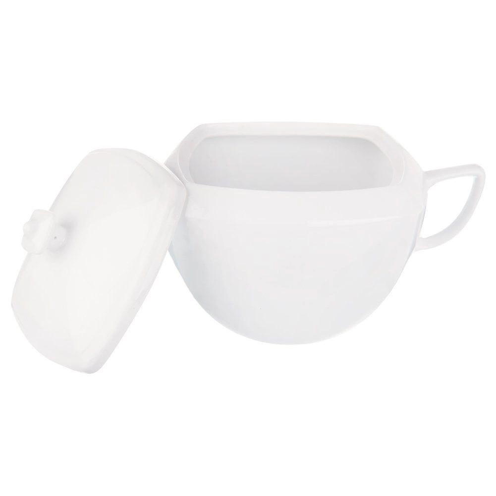 Wit, glanzend porselein met strakke lijnen past bij elk servies en geeft het dineren een elegante uitstraling.