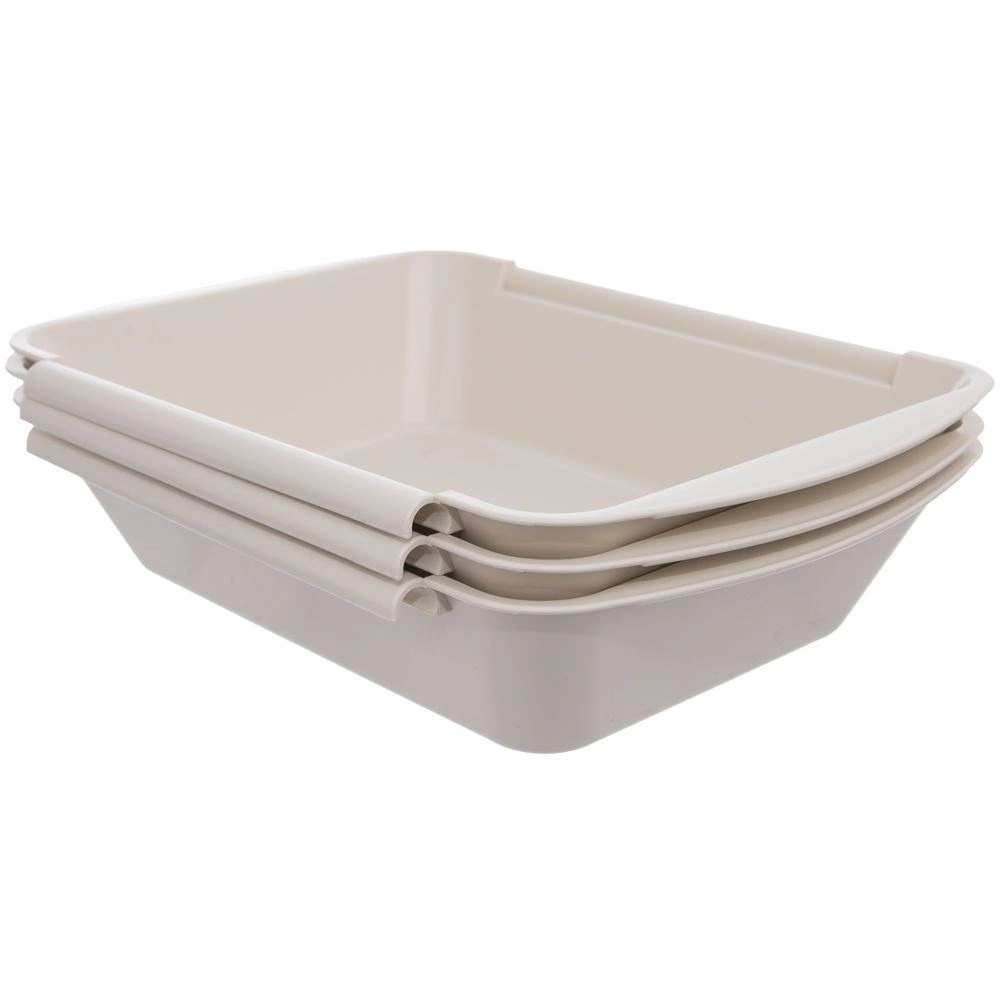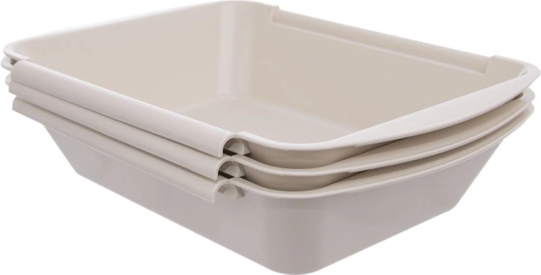 Elke schaal heeft een inhoud van 1,5 liter en past dankzij de compacte afmetingen van 26 × 20 × 5,5 cm op een standaard keukenblad. Na gebruik schuif je ze eenvoudig in elkaar, zodat je ruimte bespaart. Het duurzame kunststof in beige is makkelijk schoon te maken, geschikt voor de vaatwasser en de magnetron.