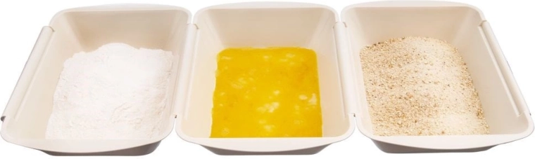- Ideaal voor paneren – geordend station voor bloem, ei en paneermeel.