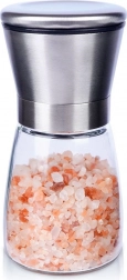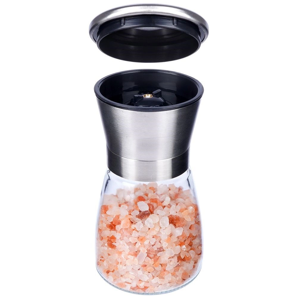 De combinatie van transparant glas voor inhoudscontrole en roestvrij staal voor duurzaamheid garandeert een lange levensduur en een moderne uitstraling. Het deksel vangt restjes gemalen kruiden op en houdt de keuken schoon. Geschikt voor thuisgebruik en horeca.