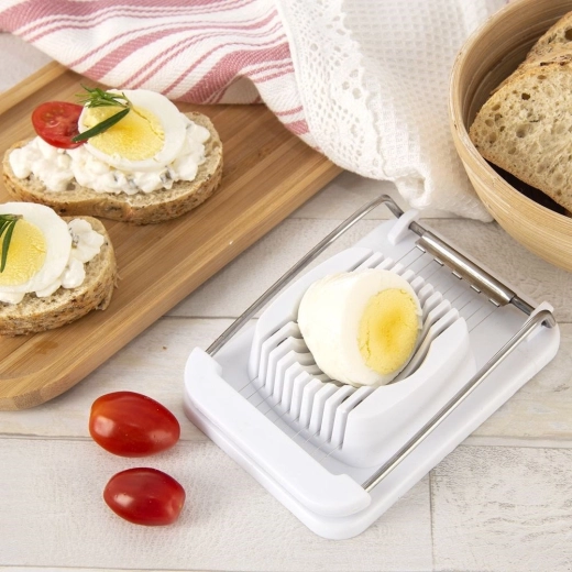 Maak het bereiden van salades, broodjes en koude schotels makkelijker. Deze eiersnijder combineert een stevige kunststof basis met roestvrijstalen snaren voor schone sneden zonder kruimelen. Het ergonomische ontwerp houdt het ei stevig vast en maakt het mogelijk om met één druk 10 gelijkmatige plakjes te snijden.