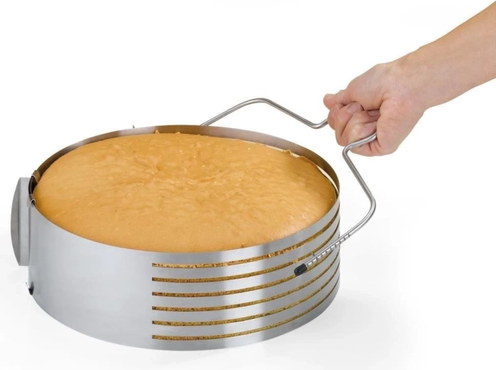 Maak het bereiden van taarten eenvoudiger met deze hoogwaardige RVS snaarsnijder. Twee scherpe snaren van 29 cm zorgen voor precisie en rechte sneden, zodat je de cakebodem eenvoudig in gelijke lagen verdeelt. Het gereedschap is duurzaam, licht en ligt prettig in de hand.
