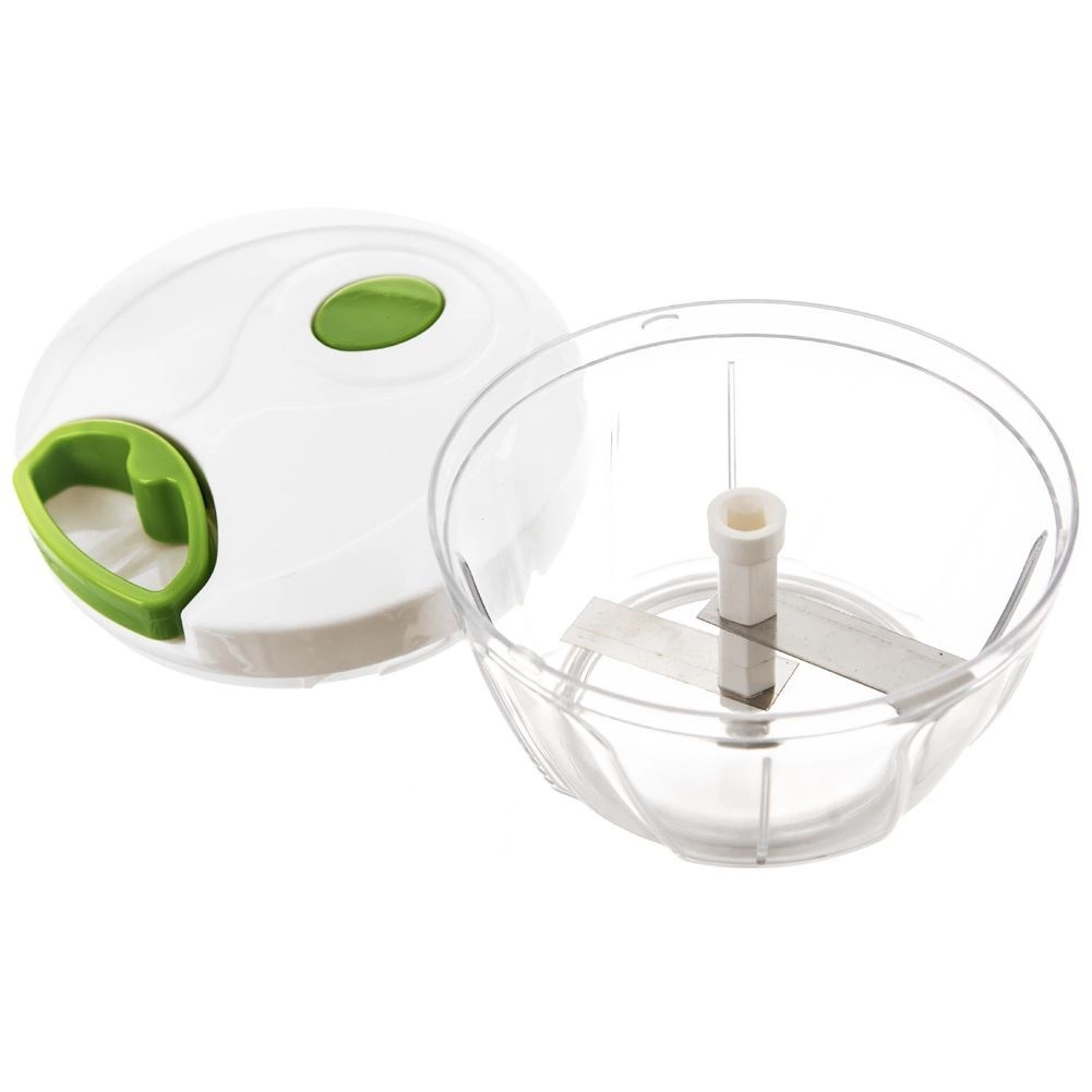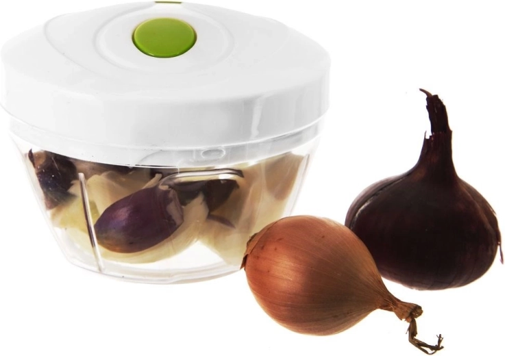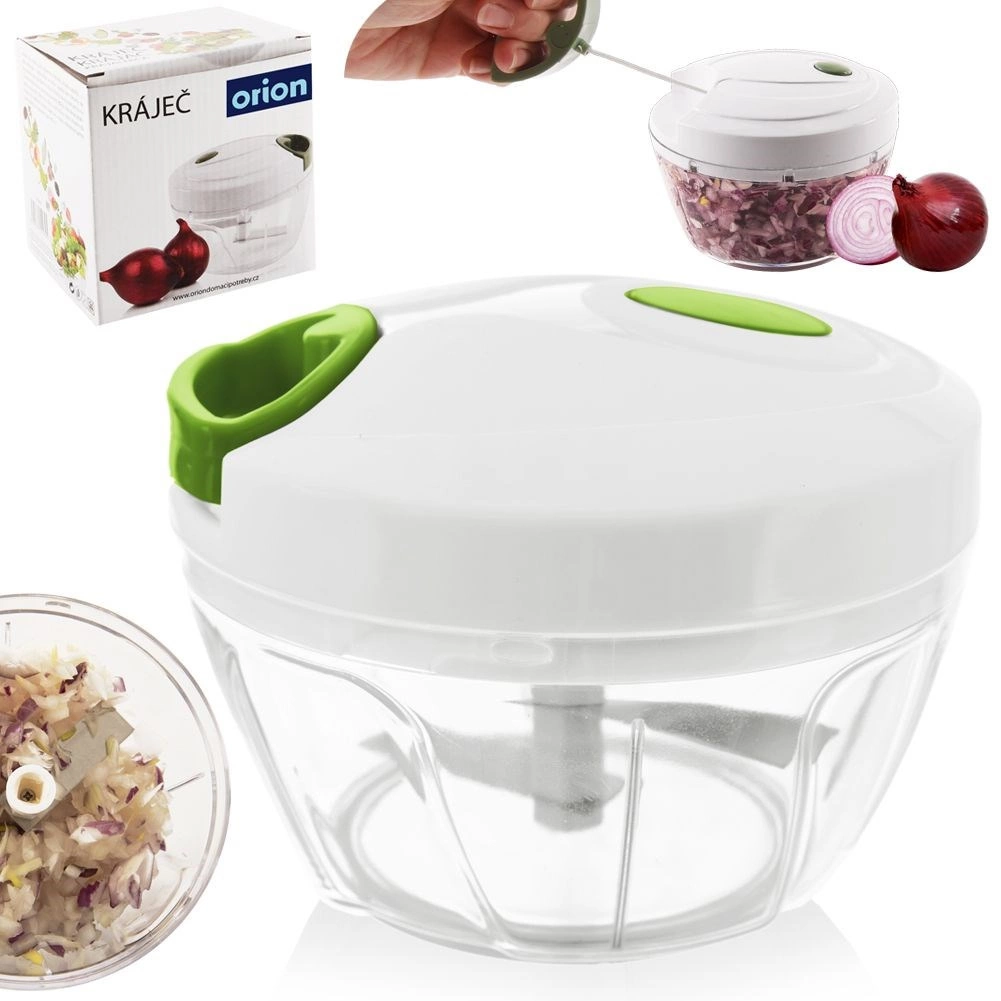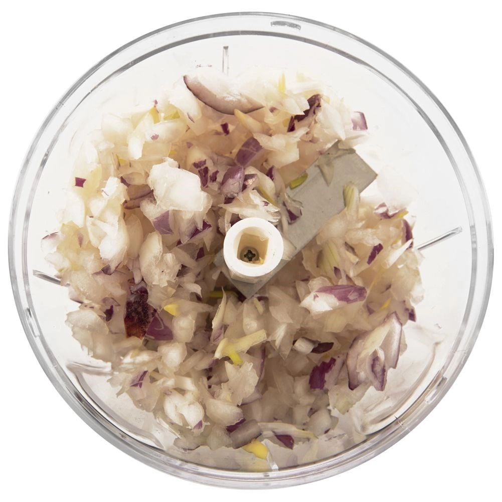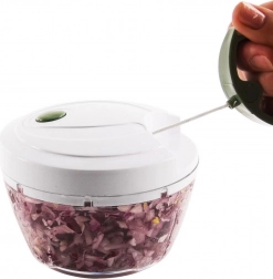 Een praktische keukenhulp voor dagelijks gebruik – een handmatige hakker met trekmechanisme. Trek eenvoudig aan het handvat in de deksel en hak, snijd en mix in een oogwenk, geheel zonder elektriciteit. Dankzij de transparante kom heb je volledige controle over de grofheid – het aantal trekbewegingen bepaalt de uiteindelijke structuur.
