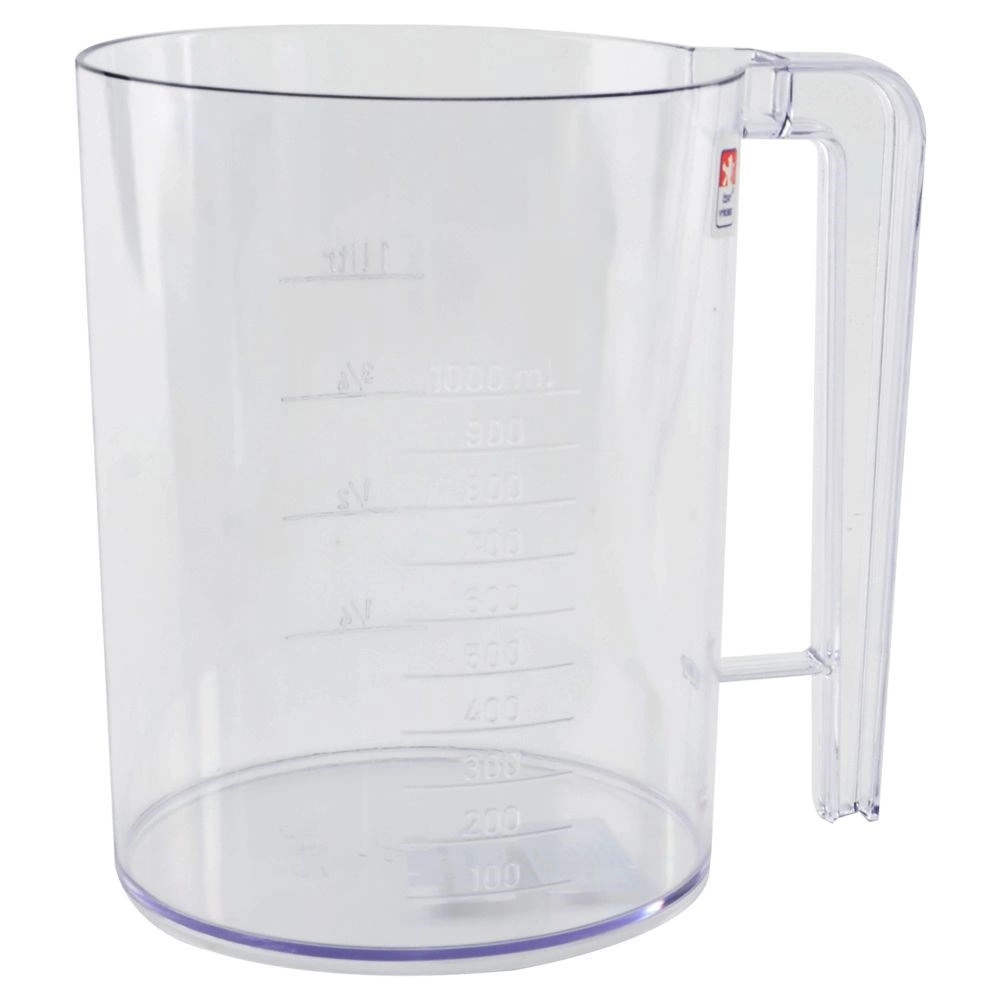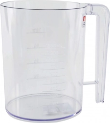 De transparante kan met duidelijke schaal 100–10000 ml en markering 1/4–1 l vergemakkelijkt het controleren van de hoeveelheid ingrediënten en de consistentie van het beslag.