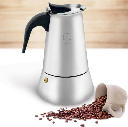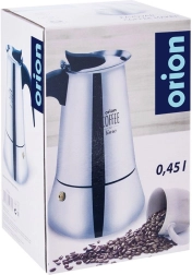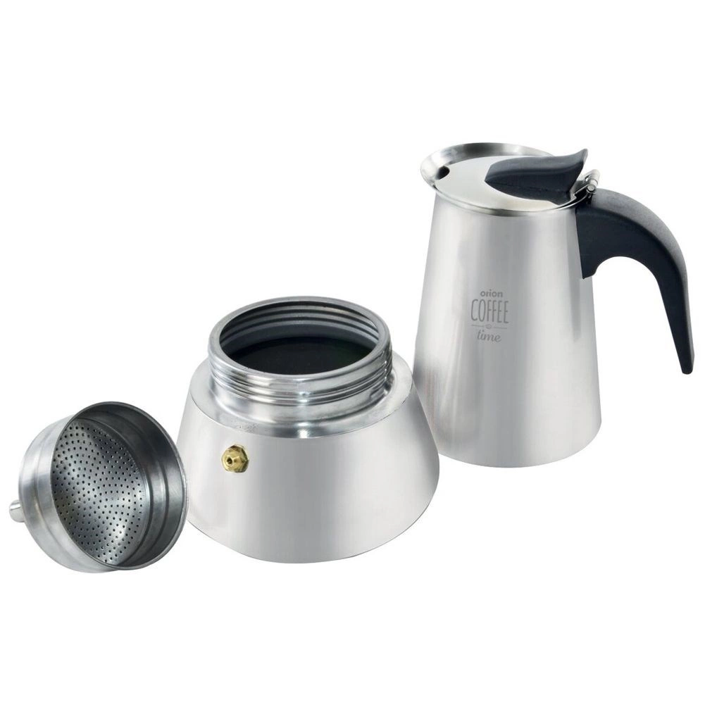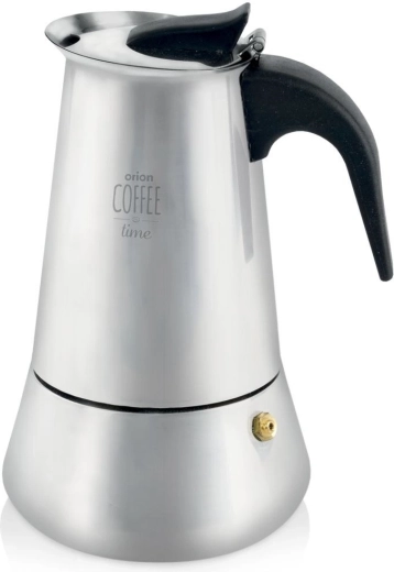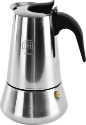 Elegante roestvrijstalen mokapot met een inhoud van 450 ml voor het bereiden van traditioneel Italiaans espresso, tot 9 kopjes. Biedt een duurzame roestvrijstalen uitvoering, een comfortabele ergonomische handgreep, een veiligheids-overdrukventiel en eenvoudige reiniging, inclusief mogelijkheid tot reinigen in de vaatwasser. Geschikt voor alle soorten kookplaten behalve inductie.
