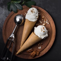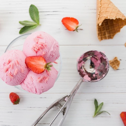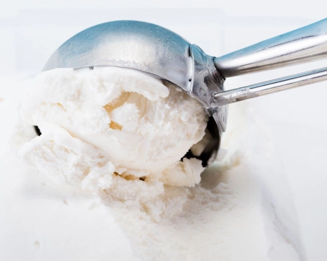De kom met een diameter van 5,5 cm en de uitwerper zorgen voor perfect regelmatige porties ijs en puree.