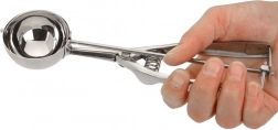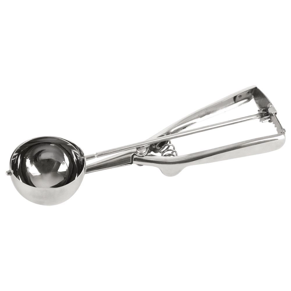 Deze robuuste roestvrijstalen ijslepel met een lengte van 22,5 cm en een kom met een diameter van 5,5 cm maakt portioneren eenvoudig en zorgt altijd voor gelijke, gladde bolletjes. De automatische uitwerper laat de portie voorzichtig uit de kom los, waardoor serveren snel en schoon gaat.