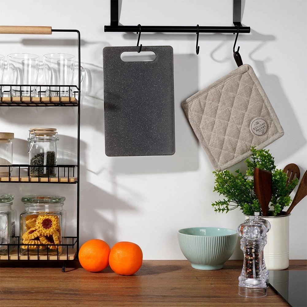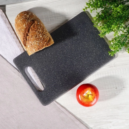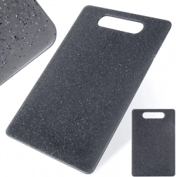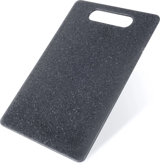 De grijze snijplank van duurzame kunststof met granietlook is een uitstekende keuze voor elke keuken. De compacte afmetingen van 24 × 15 cm besparen ruimte en bieden toch een comfortabele werkruimte voor het snijden van brood, fruit, groenten en vlees. Het materiaal is vriendelijk voor messen en geschikt voor alle messen, inclusief keramische.