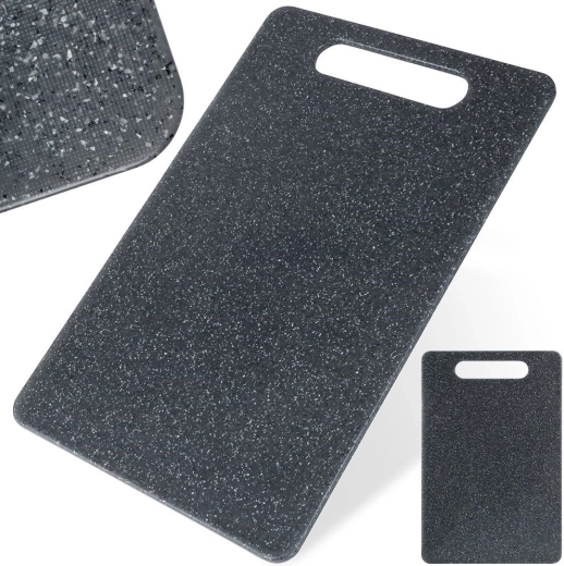 De universele snijplank in elegant grijs met granietlook wordt een betrouwbare hulp in elke keuken. Dankzij het hoogwaardige kunststof is hij licht, duurzaam en gemakkelijk te reinigen, terwijl hij een stabiel oppervlak biedt voor het snijden van brood, groenten en vlees.