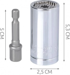 Dankzij de adapter kan de dop worden gebruikt met verschillende gereedschapssystemen, wat de veelzijdigheid vergroot.