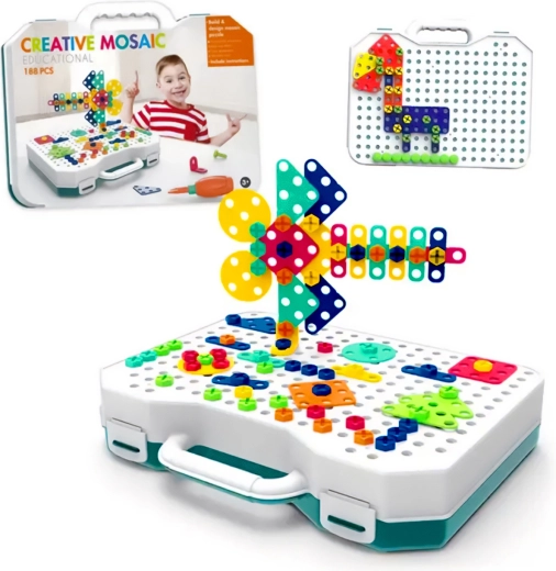 Deze kleurrijke bouwset biedt een breed scala aan vormen om originele constructies te bouwen. Het praktische koffertje met afmetingen 30 × 23,5 × 11 cm maakt het eenvoudig om alle onderdelen te dragen en op te bergen, zodat je altijd orde en plezier bij de hand hebt.