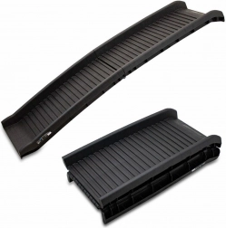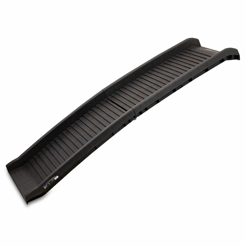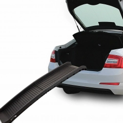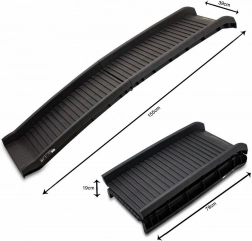 Met een gewicht van slechts 5 kg en een opvouwbare constructie neem je de ramp eenvoudig mee en berg je hem op in de kofferbak. Rubberen beschermstukken beschermen bovendien de lak van de bumper wanneer de ramp tegen het voertuig leunt. Het onderhoud is snel – oppervlak eenvoudig afnemen.