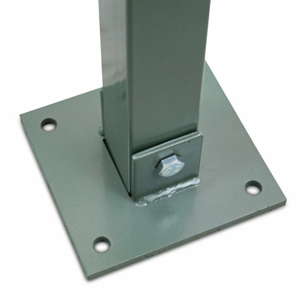 De massieve stalen constructie met poedercoating is bestand tegen weersinvloeden, corrosie en UV-straling voor langdurig buitengebruik.