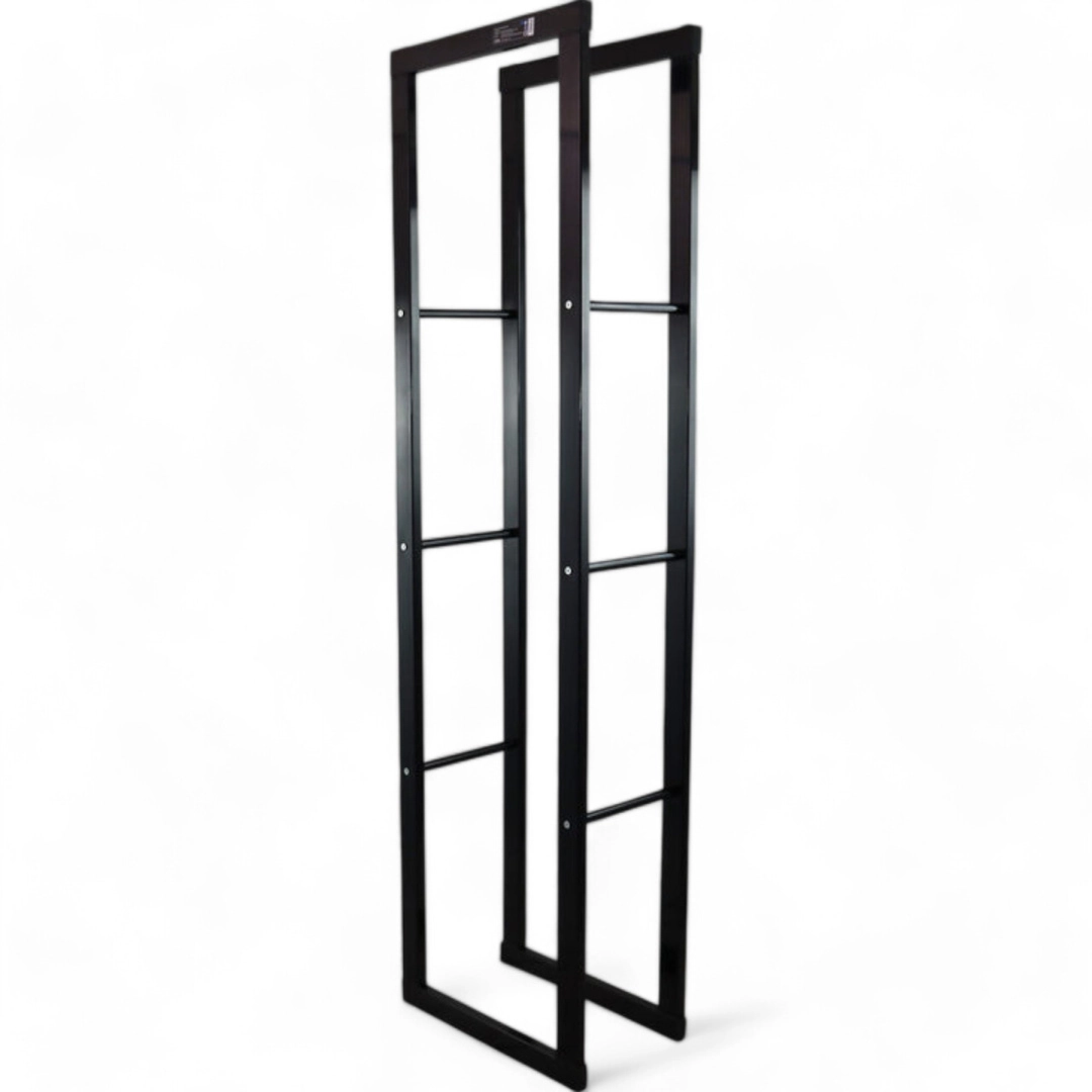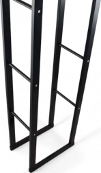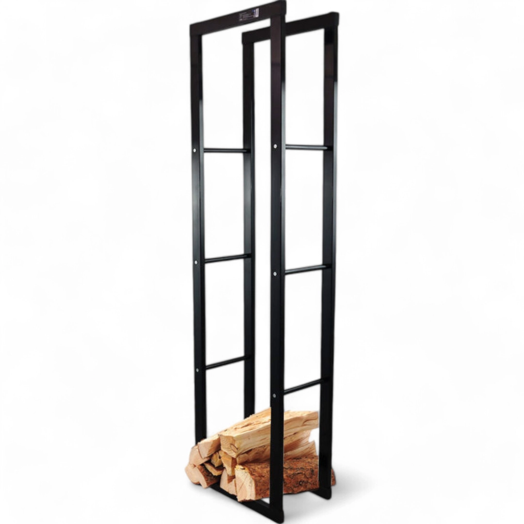 Houd het netjes bij de haard met stijl. Deze hoge, slanke houtopslag biedt maximale capaciteit op minimale ruimte. Het massieve stalen frame (profiel 20 × 20 mm) is volledig gelast, waardoor wiebelen ook na jaren gebruik geen risico vormt.