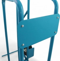 De stevige stalen constructie met verstevigingen en ergonomische handgrepen biedt veilig manoeuvreren en een lange levensduur bij dagelijks gebruik.