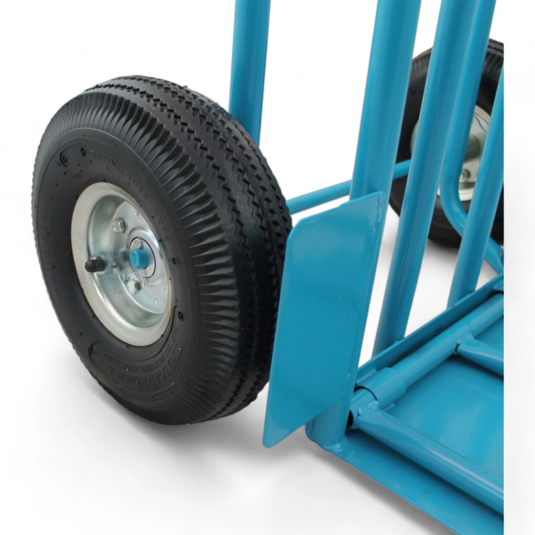 Grote, met lucht gevulde wielen zorgen voor stabiliteit, dempen schokken en maken het rijden met volle lading makkelijker op bestrating, grind en gazon.