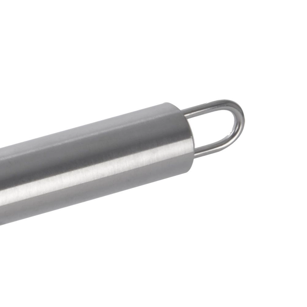 Dankzij de robuuste RVS-constructie is de garde duurzaam en hygiënisch, geschikt voor dagelijks gebruik. Het lange handvat biedt een comfortabele grip, het oogje maakt eenvoudig ophangen mogelijk en het onderhoud is zorgeloos – de garde is vaatwasserbestendig.