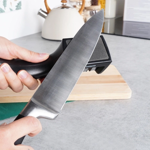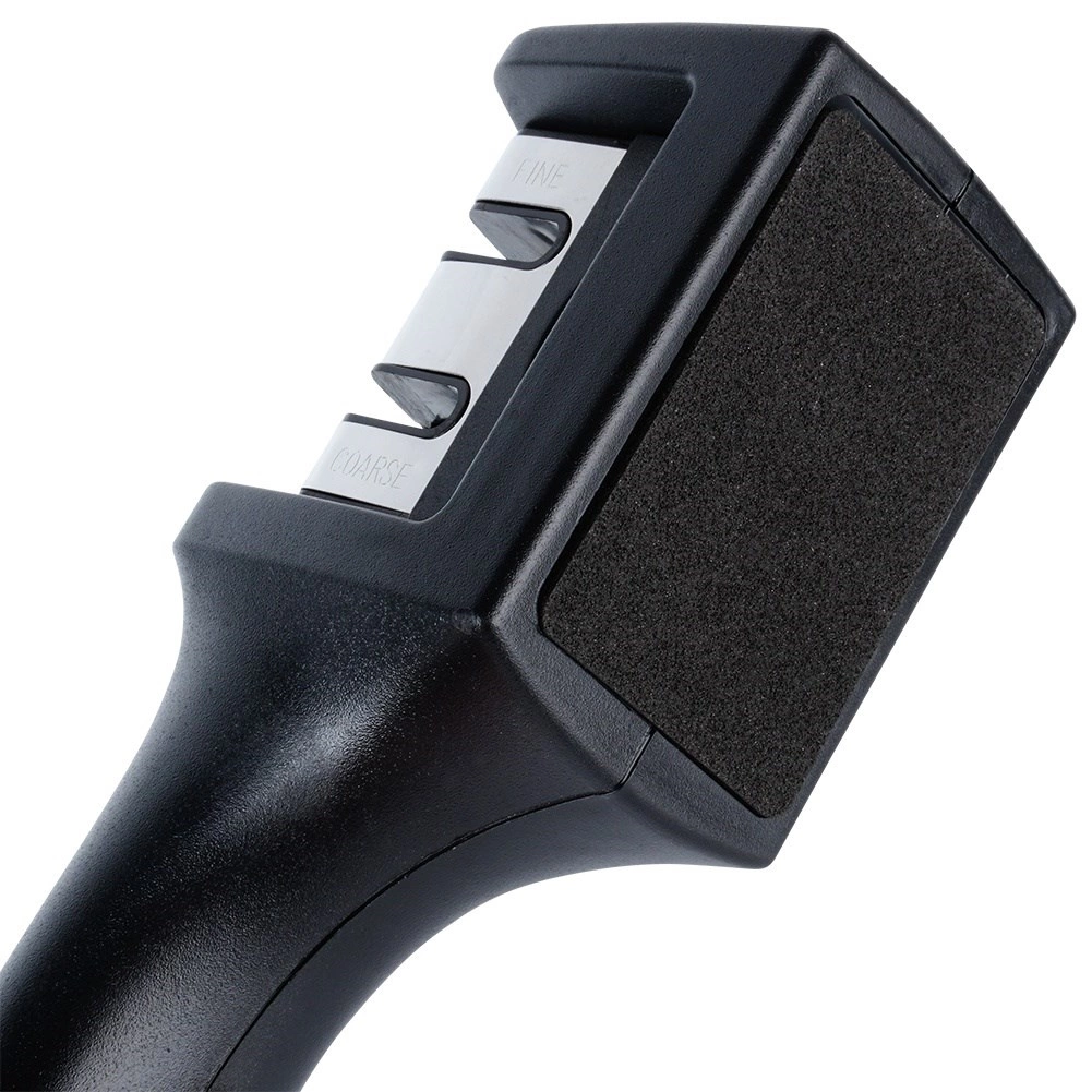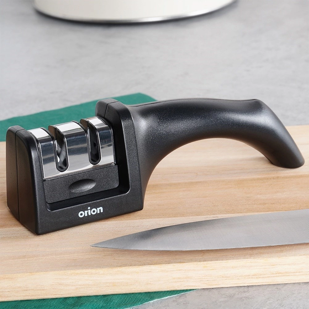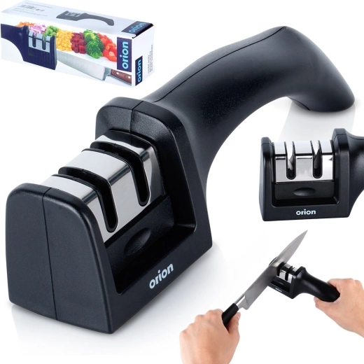 Gun je messen precieze verzorging met de tweefasige ORION-slijper. De eerste fase met een carbide kop herstelt snel een botte snede, de tweede fase met een keramische inzetstuk maakt deze zacht glad en polijst voor langdurige scherpte. De stabiele antislipbasis en gevormde handgreep zorgen voor een veilige houvast, ook bij hogere druk.