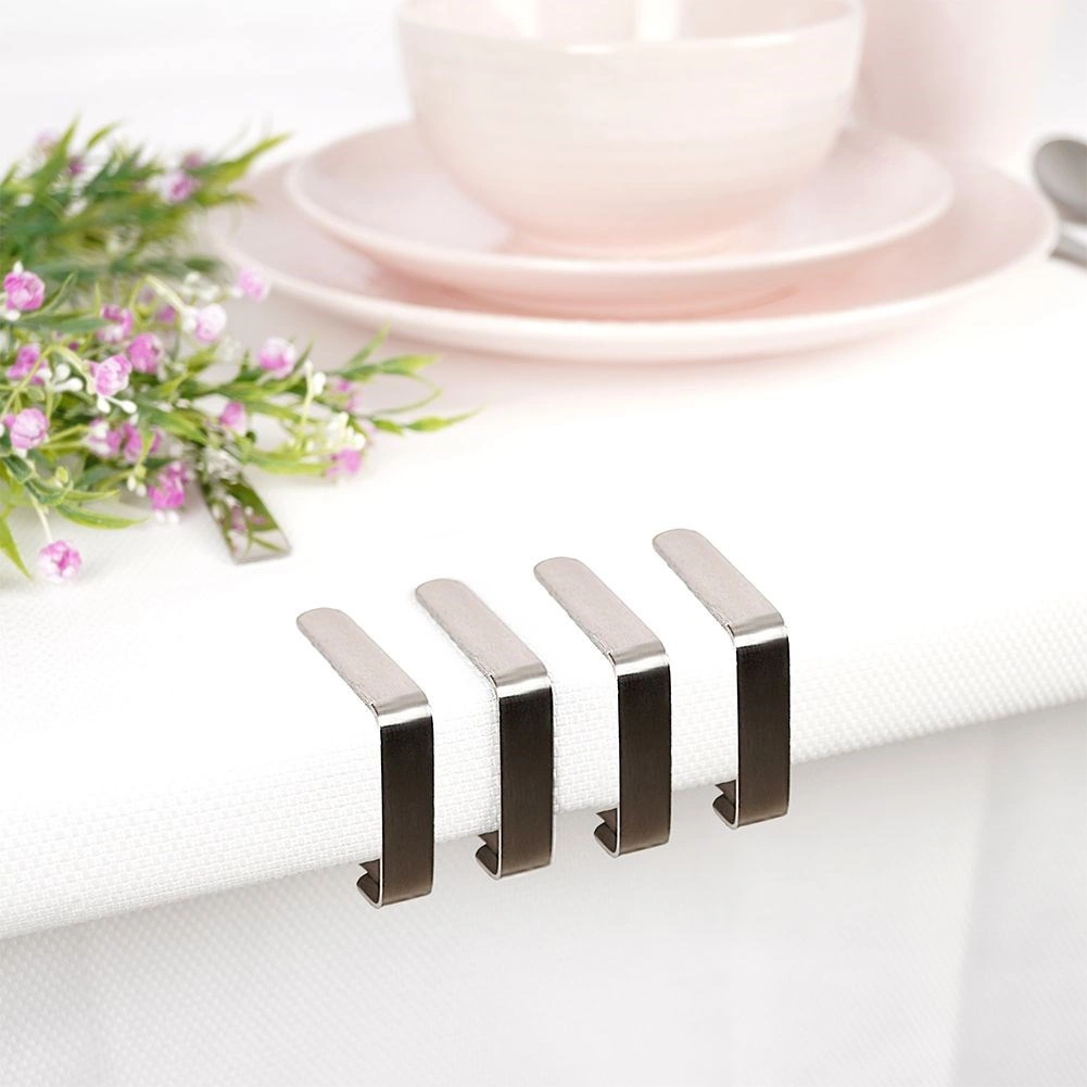 Met deze universele set klemmen krijgt u een snelle en betrouwbare oplossing tegen verschuivende tafelkleden bij familiediners, barbecues en picknicks. Roestvrij staal zorgt voor een lange levensduur, corrosiebestendigheid en een elegante look die in elke omgeving past.
