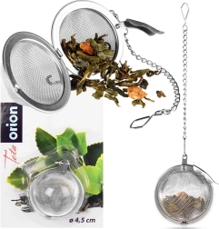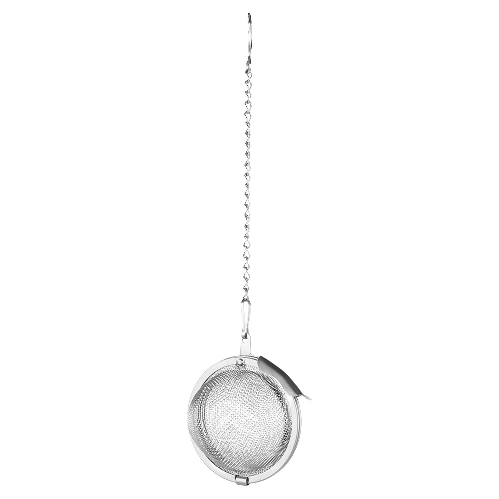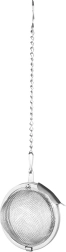 Compact RVS theefilter voor losse thee en kruiden met een diameter van 4,5 cm, voorzien van een praktisch kettinkje met haakje. Het fijne gaas houdt blaadjes en specerijen betrouwbaar tegen, zodat de drank schoon en zonder bezinksel blijft. De duurzame roestvrijstalen uitvoering is vaatwasmachinebestendig en de veilige sluiting voorkomt dat de inhoud eruit valt.