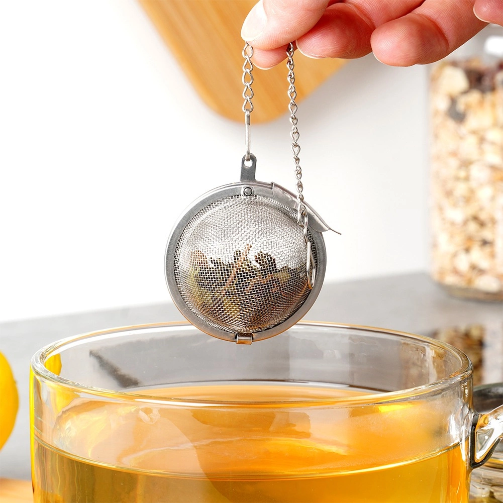 Universeel theefilter met fijn roestvrijstalen gaas, ideaal voor het zetten van losse thee en kruiden. Dankzij het haakje aan het kettinkje hang je het eenvoudig aan een mok, glas of theepot en verwijder je het na het trekken moeiteloos. De stevige sluiting houdt de inhoud binnen en voorkomt dat blaadjes ontsnappen.