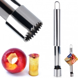 Deze roestvrijstalen appelboor is een ideale hulp voor dagelijkse keukentaken. Met één keer insteken en draaien van de gekartelde kroon verwijder je snel klokhuizen uit appels en peren, maak je fruit klaar om te vullen of te decoreren en versnel je de bereiding van strudel, taarten en desserts. De volledig metalen constructie is hygiënisch, duurzaam en voedselveilig.