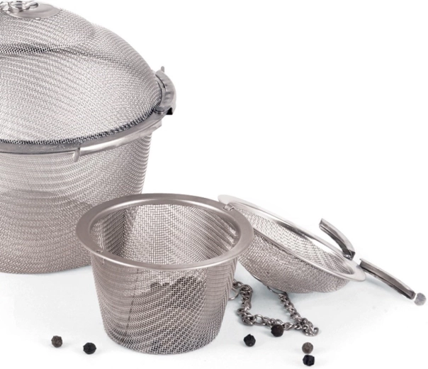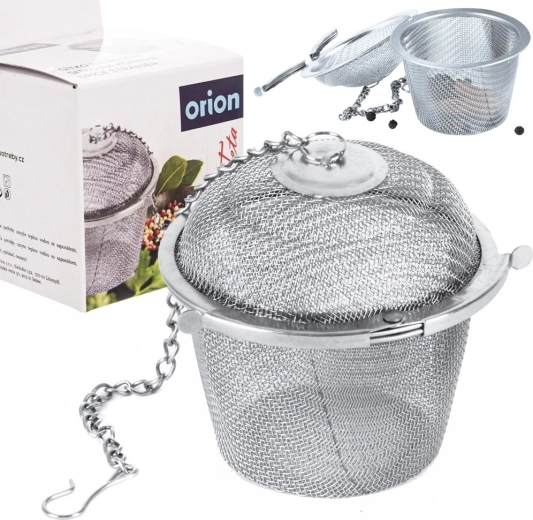 Praktische stalen kruidenei met een diameter van 6 cm en een hoogte van 6 cm voor het eenvoudig op smaak brengen van soepen, bouillons, sauzen en thee. Voorzien van een fijn, dicht geweven gaas, een sluitbaar mandje en een ketting met haak om het gemakkelijk aan de rand van een pan of theepot te hangen. Gemaakt van hoogwaardige roestvrijstaal voor een lange levensduur en eenvoudig onderhoud.
