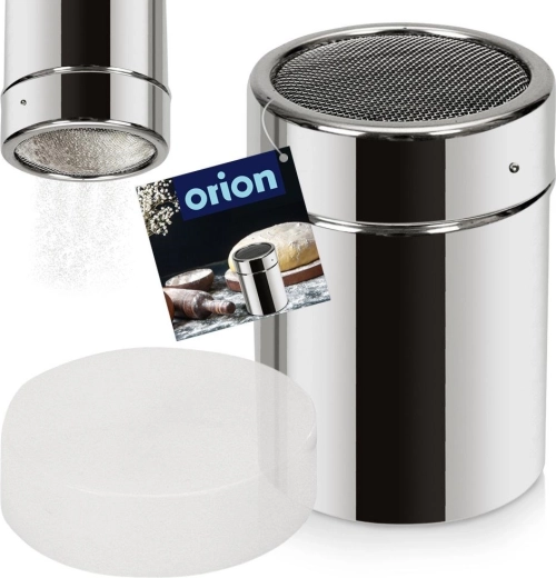 Praktische roestvrijstalen strooibus met zeef en transparant deksel voor fijn en gelijkmatig strooien van poedersuiker, cacao of kaneel. Dankzij de fijne zeef strooit hij zonder klontjes, het afsluitbare deksel beschermt de inhoud tegen vocht en behoudt de frisse geur. Ideaal voor thuis bakken en voor koffiebars en horeca.