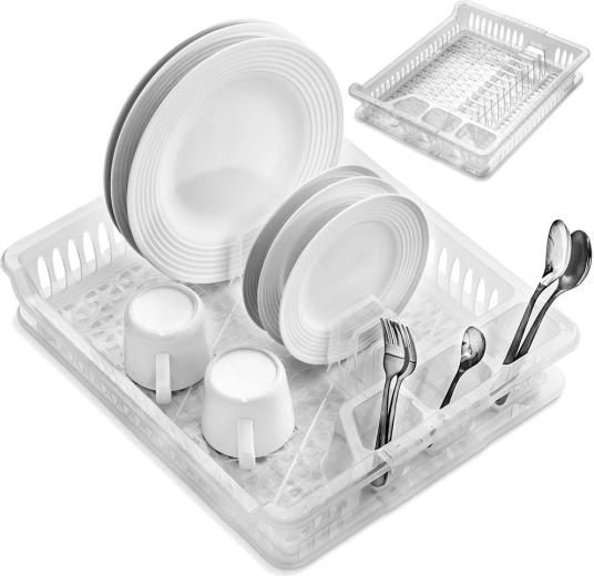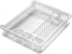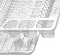 Het afdruiprek is gemaakt van duurzame, halftransparante kunststof in het wit. Het is licht, stabiel en makkelijk te reinigen. Het tijdloze design past in moderne en klassieke keukens.