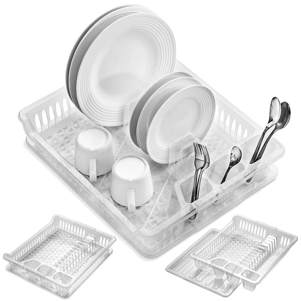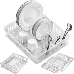 Dit praktische afdruiprek is een onmisbare hulp in elke keuken. Dankzij de doordachte sleuven en vakken rangschik je eenvoudig afgewassen borden, glazen, kommen en bestek. De uitneembare afdruiptray vangt water op en vergemakkelijkt het schoonmaken, zodat het werkblad vrij van druppels blijft.