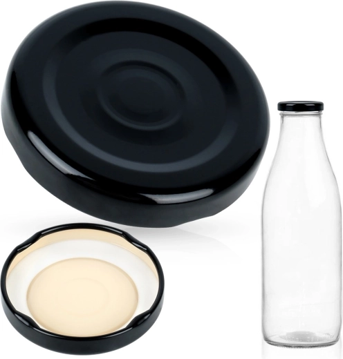 Universele metalen dop met een diameter van 48 mm en vier stevige vergrendelingen voor een zekere bevestiging op flessen en kleine potjes. Zorgt voor een luchtdichte en lekvrije afsluiting, beschermt de inhoud tegen vocht en externe invloeden en verlengt de versheid van dranken en zelfgemaakte lekkernijen. Duurzame metalen uitvoering in elegante zwarte kleur, geschikt voor hergebruik en milieuvriendelijk.