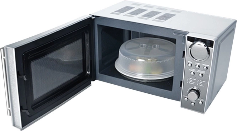 De koepelvorm met ventilatieopeningen houdt de magnetron schoon en gerechten sappig tijdens het opwarmen.