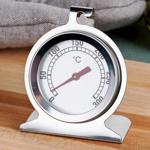 De grote en overzichtelijke wijzerplaat met schaal per 10 °C dekt een bereik van 0–300 °C, zodat u eenvoudig de ideale temperatuur voor bakken en roken bewaakt. De constructie is stabiel, de thermometer is licht en onderhoudsvriendelijk, neemt geen geuren op en is neutraal voor voedsel.