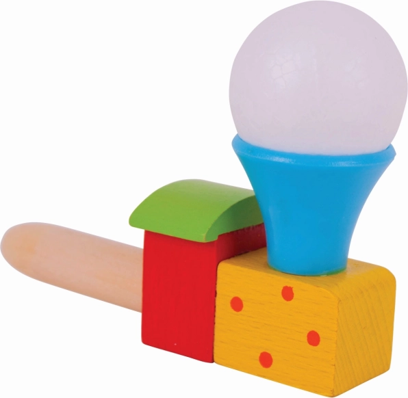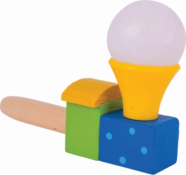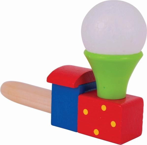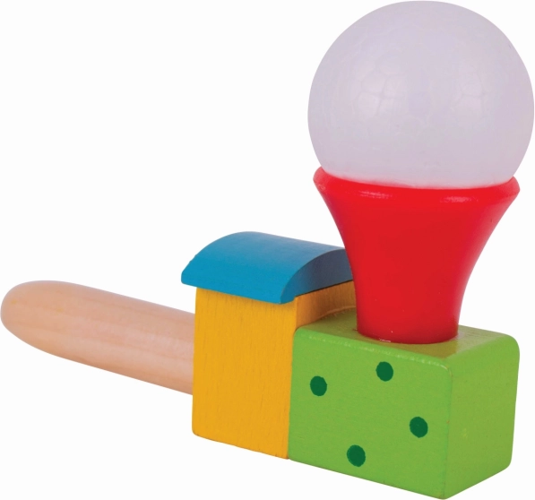 Deze kleurrijke houten locomotief met ballon verandert een simpele blaas in een klein wonder. Kinderen oefenen hun ademhaling en controle, kijken hoe het witte balletje boven de schoorsteen zweeft en ontwikkelen zo coördinatie en geduld. Ideaal voor korte speelpauzes of langere geconcentreerde pret.