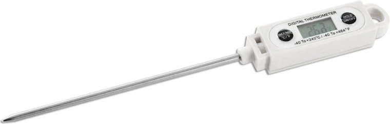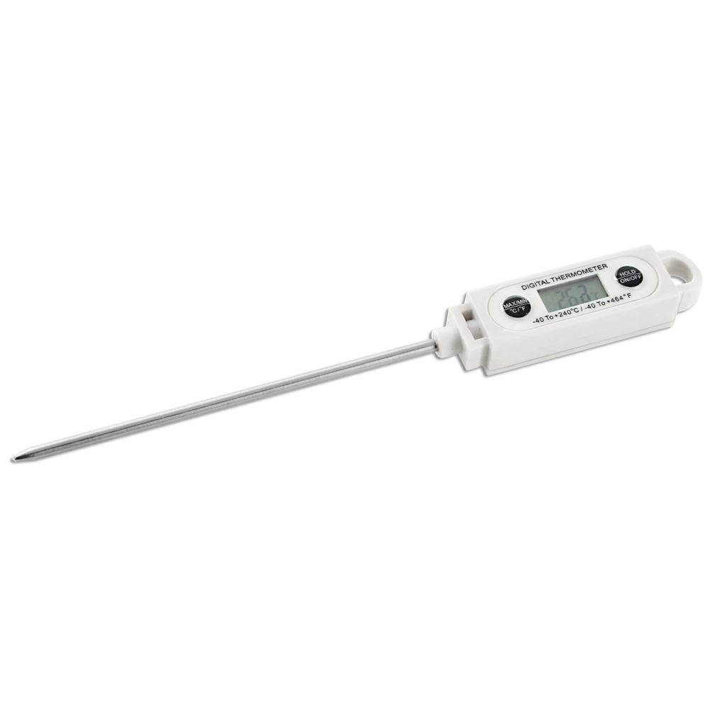 De elektronische insteekthermometer vereenvoudigt de bereiding van perfect gegaarde steaks, het braden van vlees en het controleren van de temperatuur van melk of babyvoeding. Dankzij het overzichtelijke LCD-scherm zie je direct de actuele temperatuur en met de snelle en nauwkeurige sonde van roestvrij staal behaal je betrouwbare resultaten in de keuken en bij de grill.