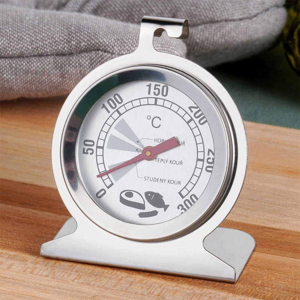 Houd de temperatuur in oven en roker onder controle en bereik perfect gegaarde en sappige gerechten. Deze duurzame thermometer met goed afleesbare schaal is ideaal voor bakken, gratineren en roken. Dankzij de compacte afmetingen 4 × 6 × 7 cm past hij in elke oven en hindert hij niet tijdens het koken.