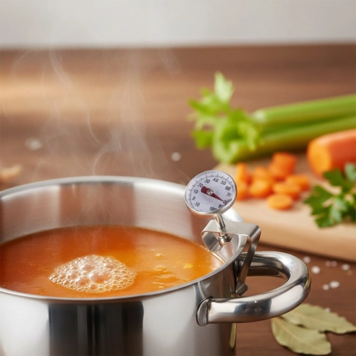 Klem de thermometer eenvoudig op de rand van een pan of kom en meet continu zonder hem in de hand te houden – ideaal voor bouillons, siropen of het verwarmen van melk.