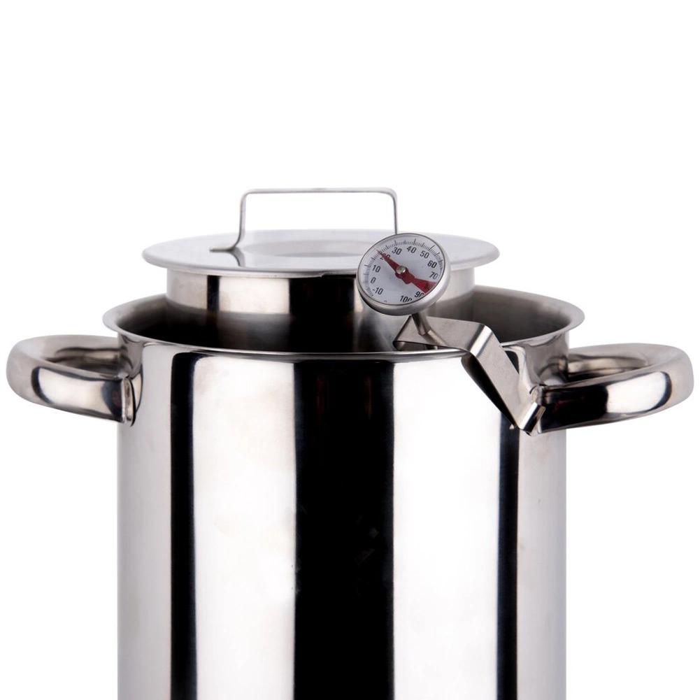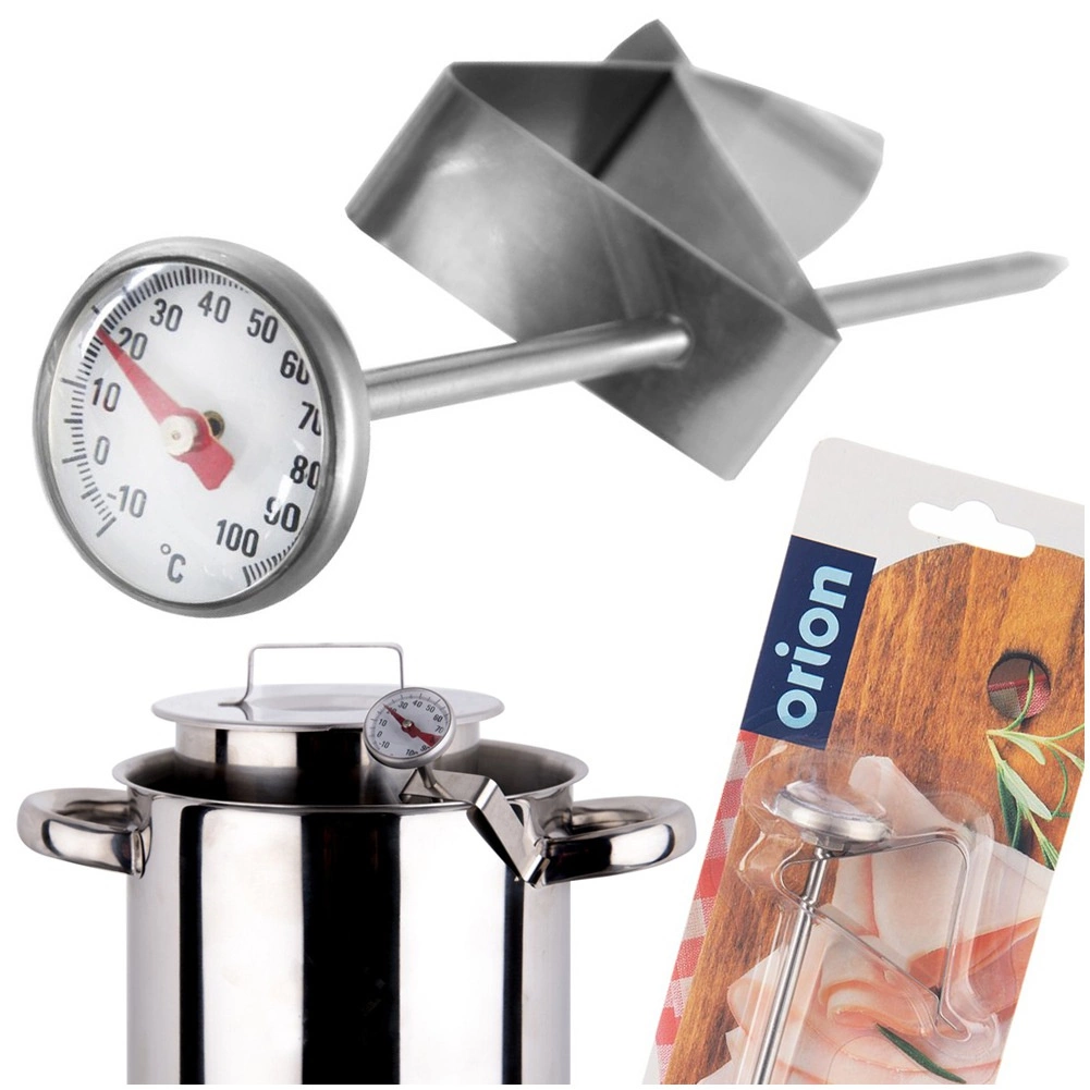 Deze duurzame roestvrijstalen thermometer is ideaal voor dagelijks koken, bakken, frituren en het bereiden van dranken. De metalen sonde meet snel de temperatuur en de grote analoge wijzerplaat maakt eenvoudig en snel aflezen mogelijk. Dankzij de praktische clip bevestigt u de thermometer veilig aan de rand van de pan – zo heeft u een stabiele en nauwkeurige meting zonder hem vast te hoeven houden.