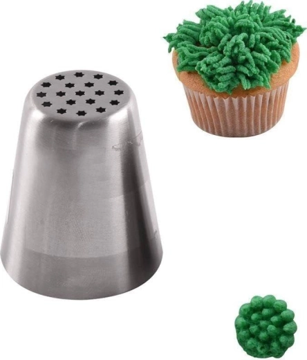 Met deze Russische spuitmond creëer je snel en effectief decoraties die doen denken aan gras of fijne haren. Perfect voor decoreren met crème, glazuur en beslag, en geschikt voor zowel beginners als professionele banketbakkers. Dankzij de robuuste roestvrijstalen constructie is hij langdurig duurzaam en veilig voor contact met voedingsmiddelen.