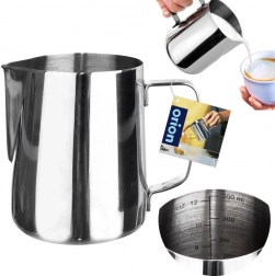 De roestvrijstalen melkkan met een inhoud van 350 ml is een ideale keuze voor zowel thuis als in de koffiebar. Dankzij de preciese schenktuit schenk je melk eenvoudig in cappuccino of latte en de interne schaalverdeling per 50 ml zorgt voor een nauwkeurige dosering. De stevige ergonomische handgreep maakt hanteren eenvoudig, zelfs bij warme inhoud.