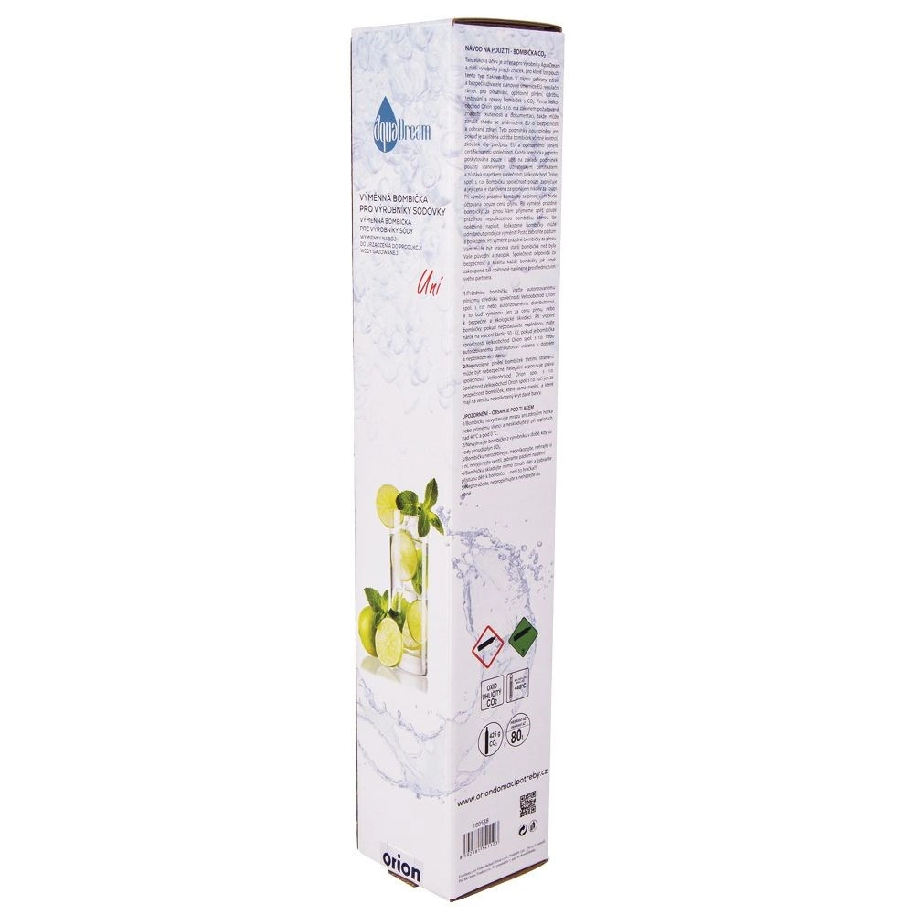 Dankzij het dubbelzijdige verticale ventiel is het vullen snel en veilig bij de meeste CO2-vulstations. De patroon is herbruikbaar – na leeggebruik vult u eenvoudig het gas bij en gaat u verder met bruisen. Het originele product van het Tsjechische merk ORION voldoet aan de Europese normen, zodat u verzekerd bent van kwaliteit en veiligheid.