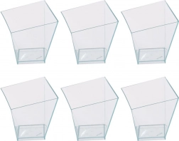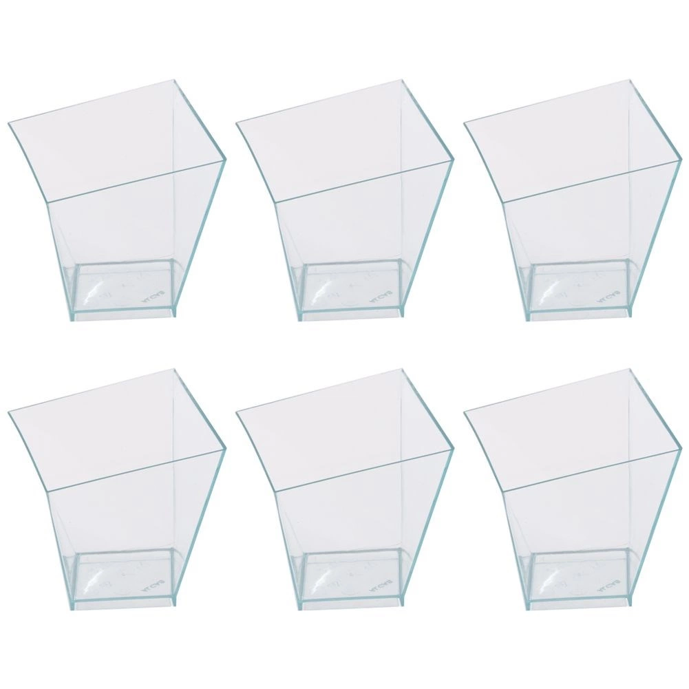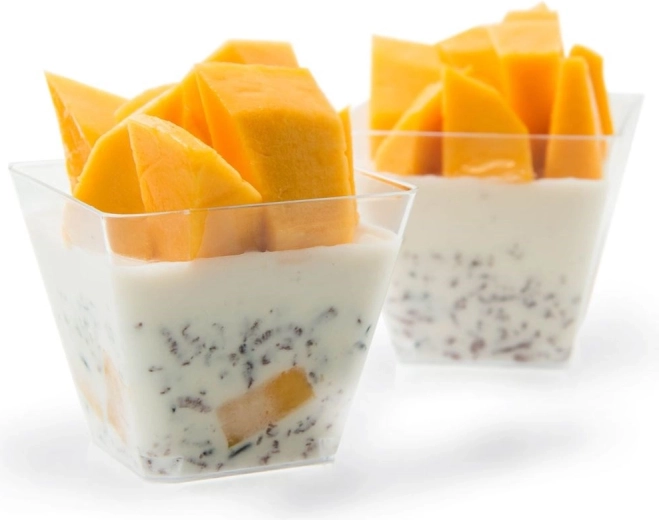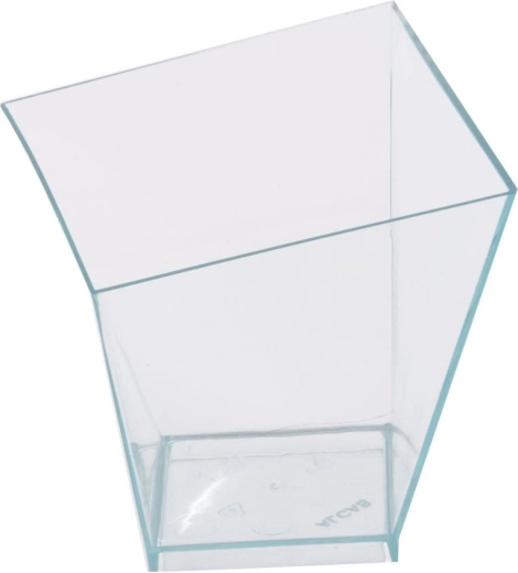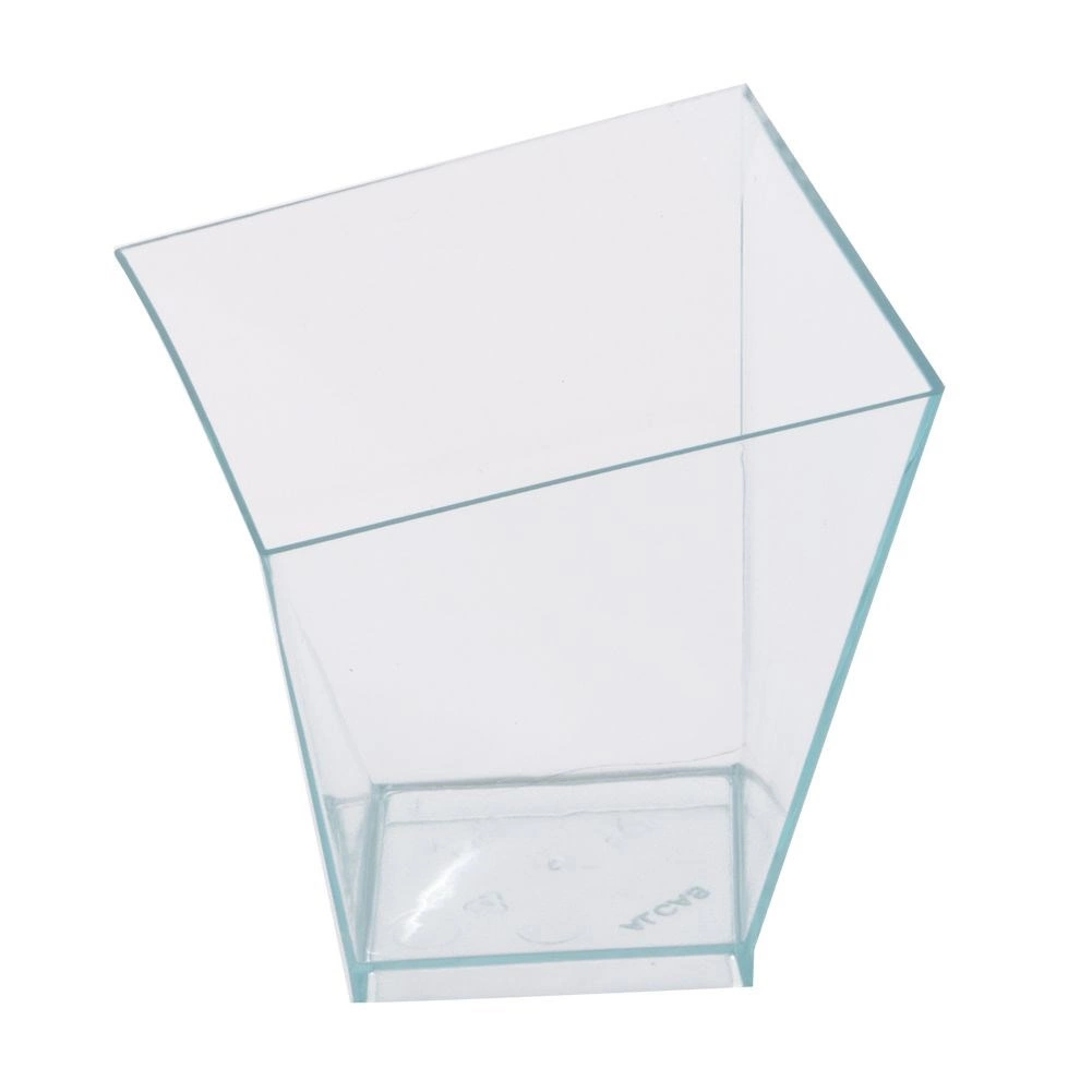 Elegante vierkante bekers met een modern schuine rand komen prachtig tot hun recht bij het serveren van panna cotta, tiramisu, mousse, puddingen, salades en hartige tapas. De transparante wanden tonen lagen en kleuren op een fraaie manier, perfect voor sweet tables en buffetten.