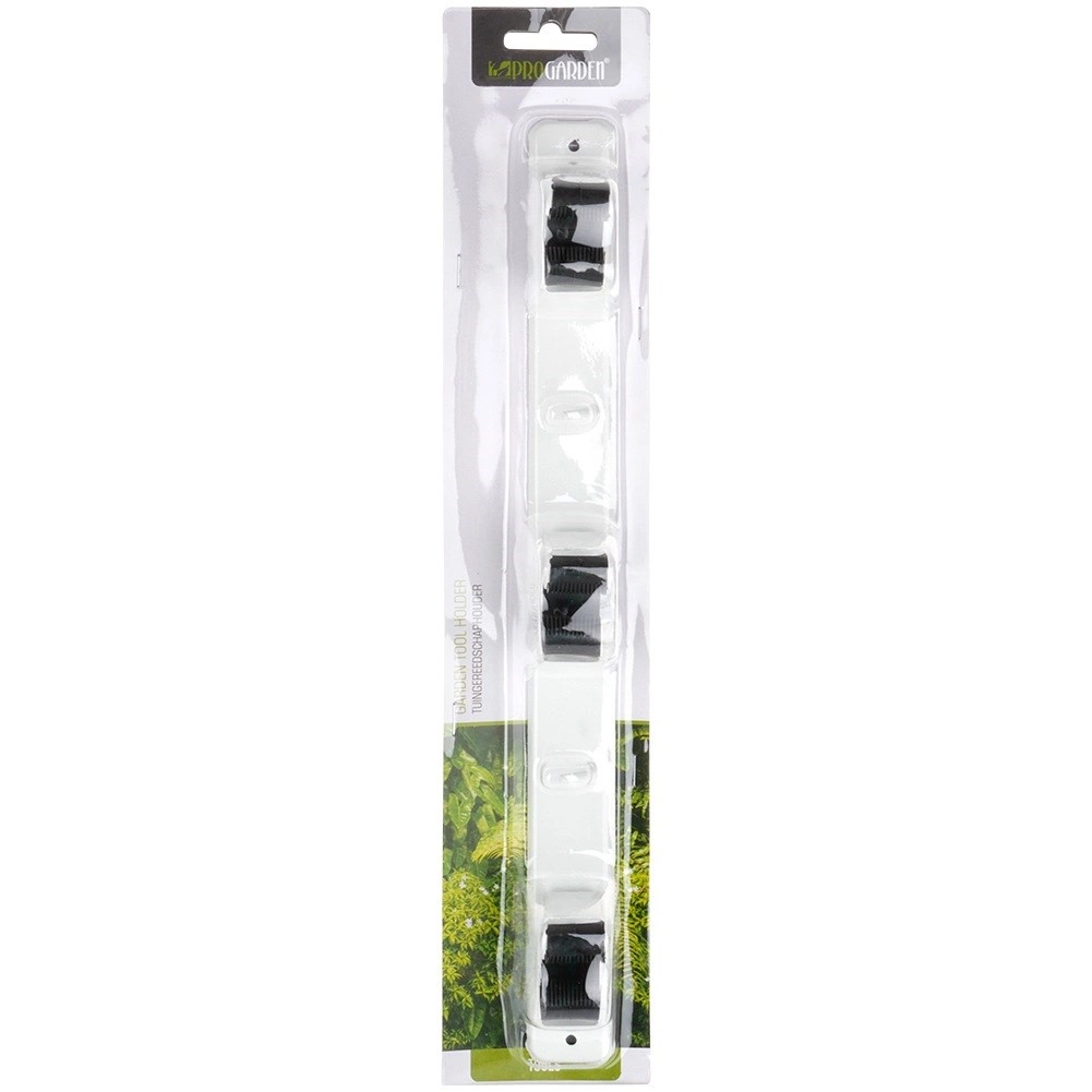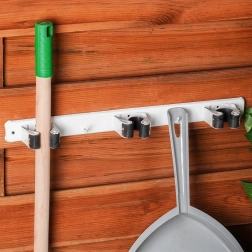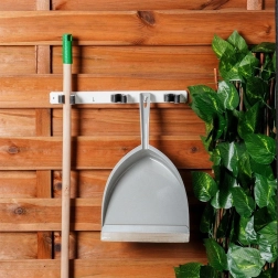 De drievoudige wandhouder PROGARDEN helpt orde te houden zodat alles binnen handbereik is. Drie automatische veerklemmen houden de stelen van moppen, bezems of harken stevig vast, terwijl twee praktische haken dienstdoen voor doeken, handvegers of blikken. Dankzij de combinatie van stevig metaal en duurzaam kunststof is de houder stabiel, betrouwbaar en geschikt voor dagelijks gebruik.