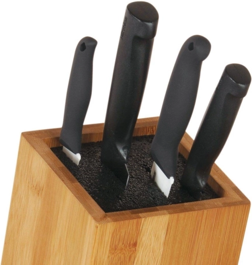 Dichte kunststof vezels zonder vaste sleuven nemen zowel stalen als keramische messen, scharen of lepels op en beschermen de snede tegen bot worden.