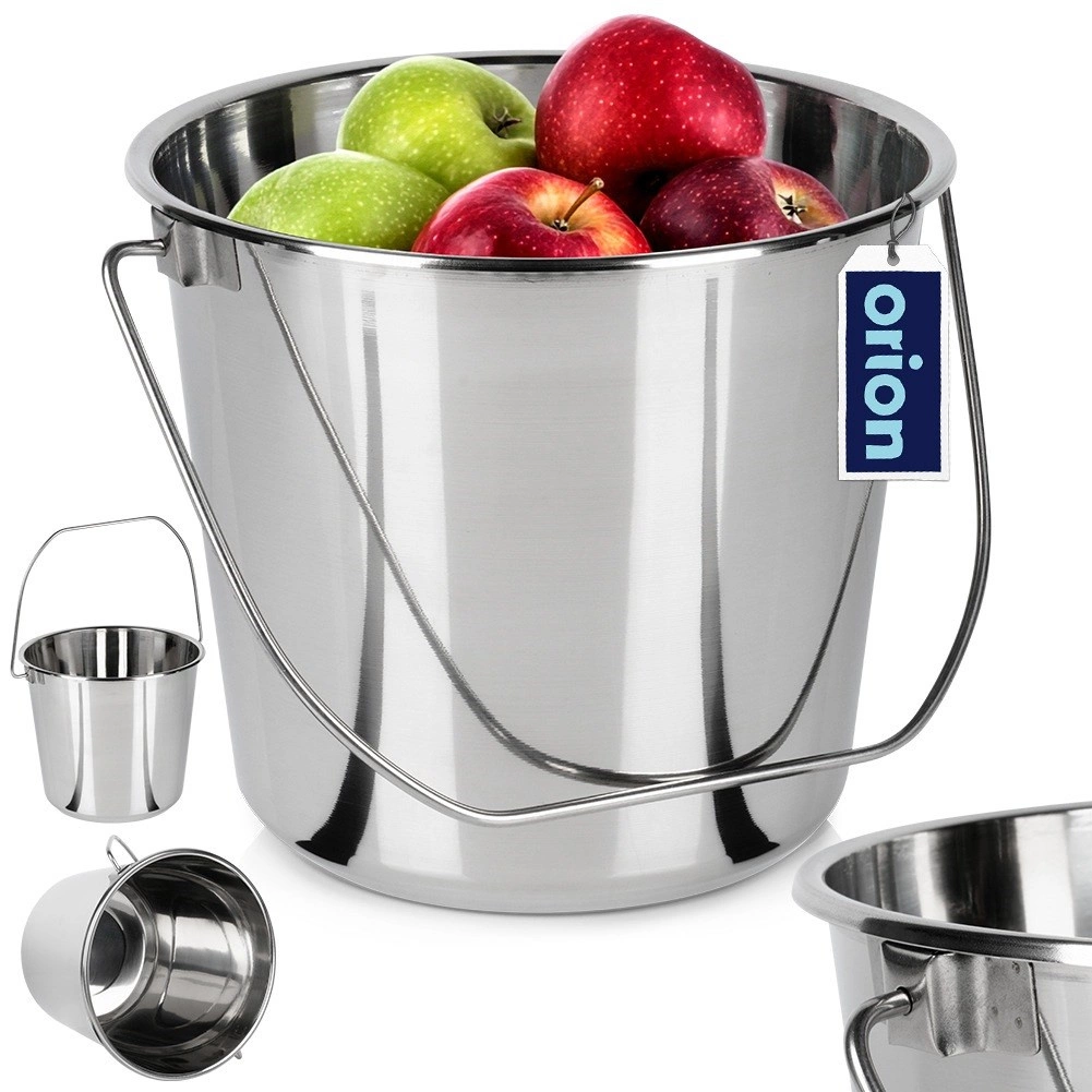 Veelzijdige inzet: van het plukken van fruit, het vervoeren van water of melk, tot gebruik op de bouwplaats of als decoratieve bloempotcover. Hoogwaardig rvs beschermt de inhoud en waarborgt hygiëne tijdens opslag en transport.