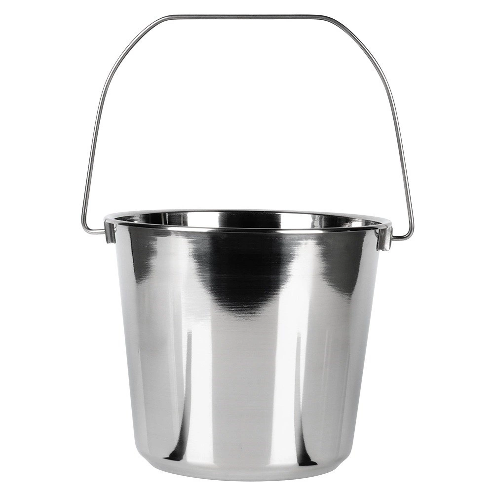 Praktische roestvrijstalen emmer met een inhoud van 8 l, geschikt voor contact met voedsel en gekenmerkt door een lange levensduur. Het gladde, gemakkelijk afwasbare oppervlak en de robuuste draadgreep zorgen voor comfortabel gebruik thuis, in de horeca en in de tuin.