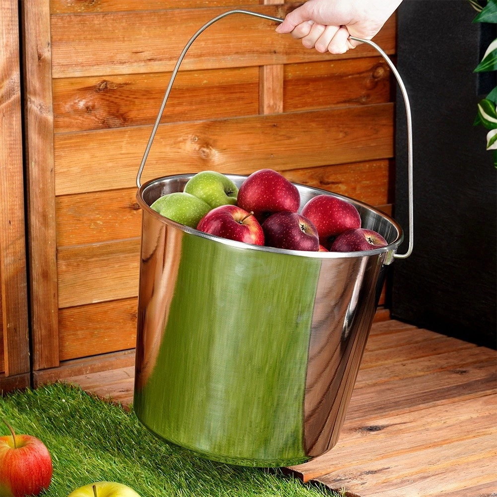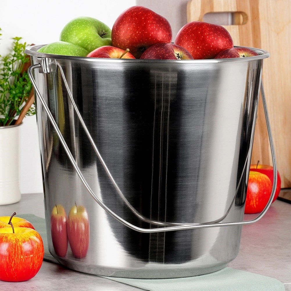 Geschikt voor het verzamelen en vervoeren van fruit, het bewaren van vloeistoffen en als stijlvolle container in de tuin. Dankzij het voedselveilige roestvrij staal is hij ideaal voor keukens en horecagebruik. Eenvoudig onderhoud en lange levensduur maken deze emmer tot een betrouwbare allrounder.
