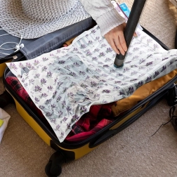 Eenvoudig in gebruik: vul de zak, sluit hem stevig met de dubbele rits en zuig via het ventiel de lucht eruit. De inhoud blijft schoon, droog en beschermd. De subtiele lavendelgeur verfrist opgeslagen textiel langdurig.